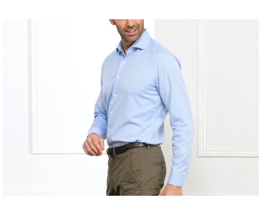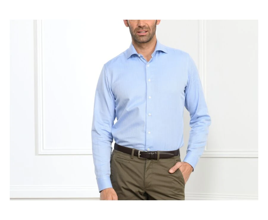La chemise homme Luigi Bleu est réalisée en twill 100% coton double fil 140g/m², avec une finition toucher doux.
