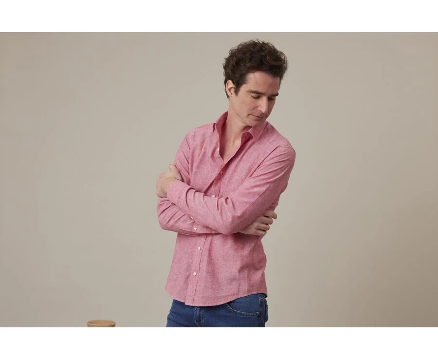 Chemise Coton Lin Chambray Rouge – SILBERT