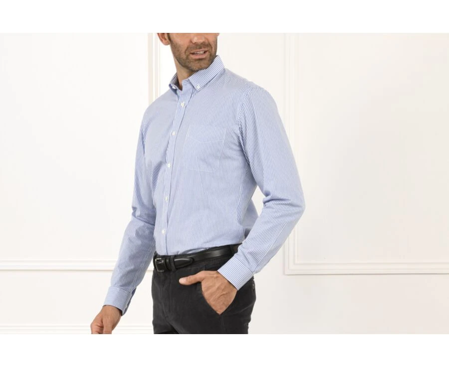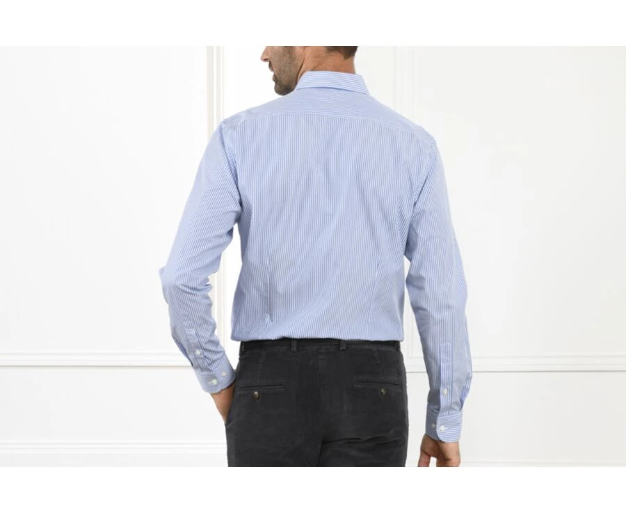 La chemise homme Marlon Bleu océan et blanc est réalisée en popeline 100% coton double fil 105g/m², avec une finition toucher doux.