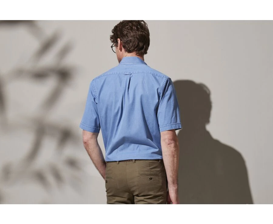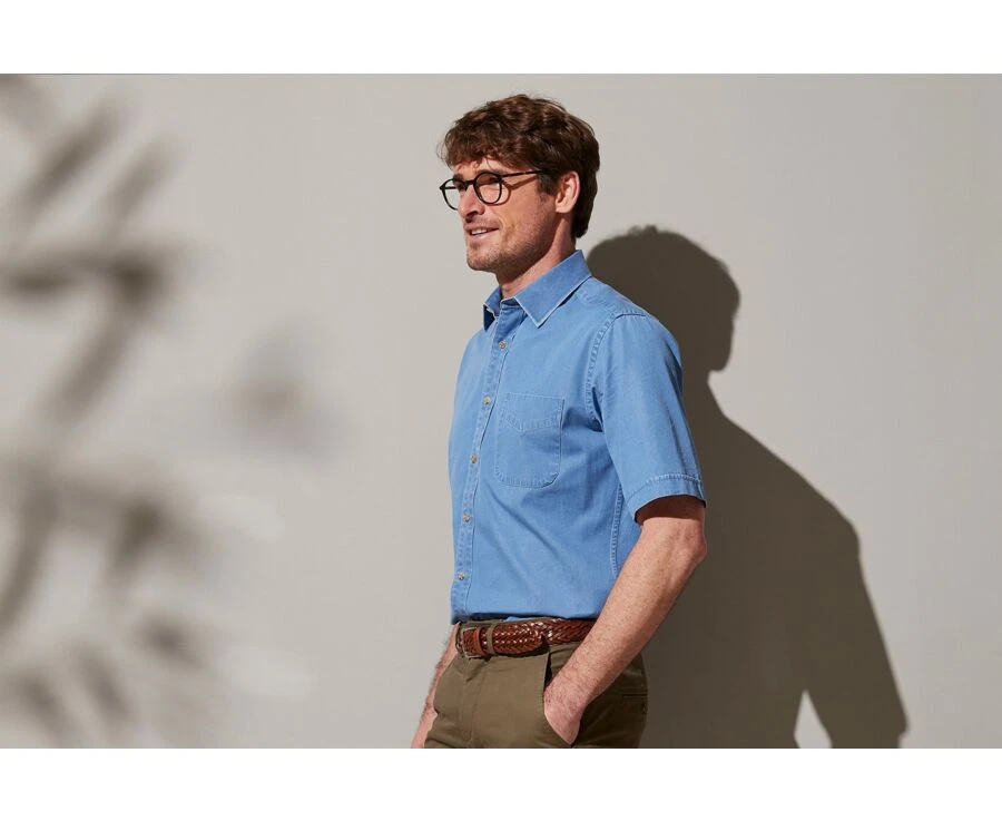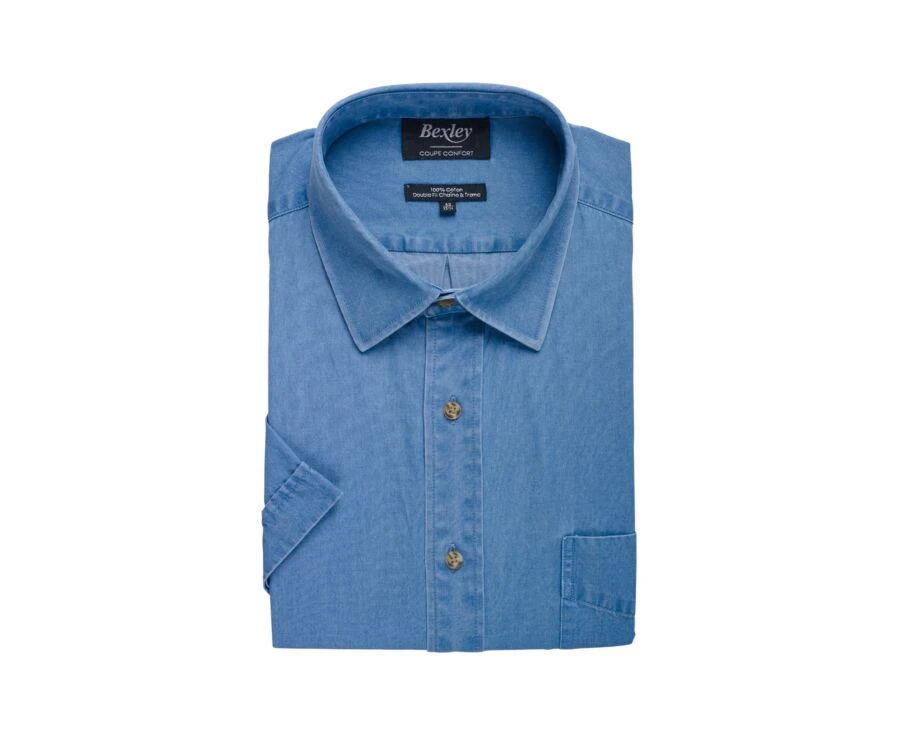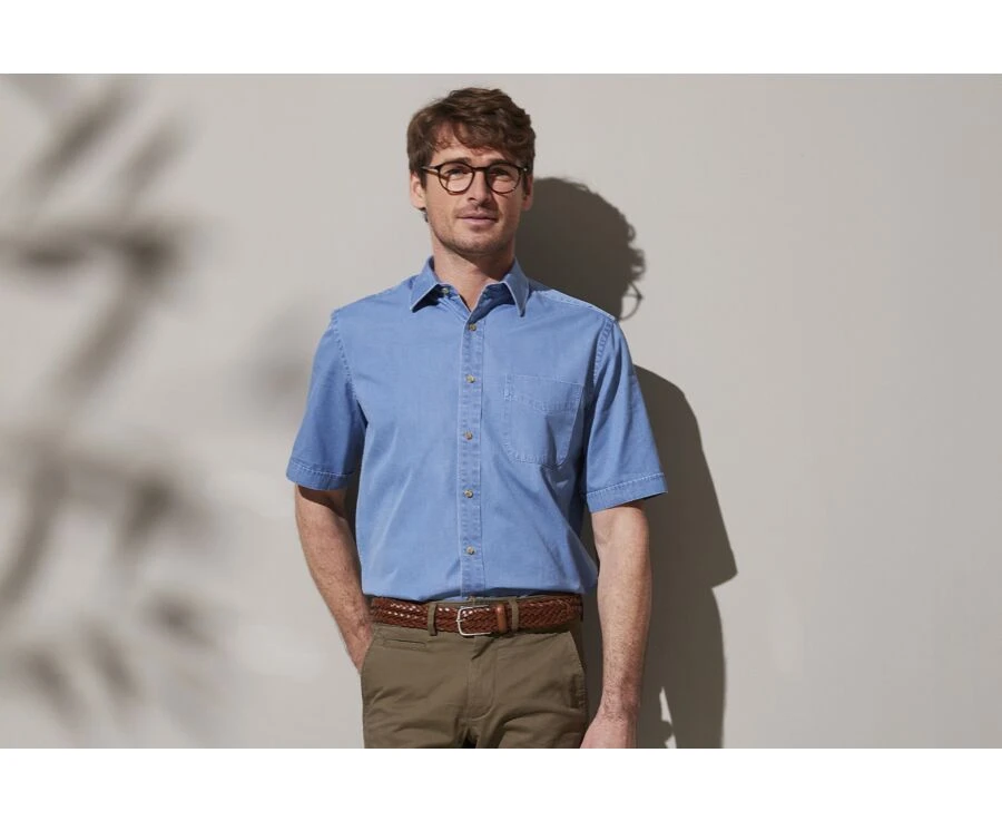 Chemise denim homme manches courtes – Chemise coton – Coupe confort – Col français