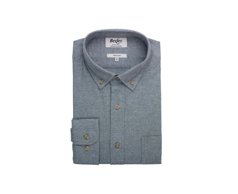 Chemise manches longues homme – Chemise coton – Coupe ajustĂ©e – Col amĂ©ricain