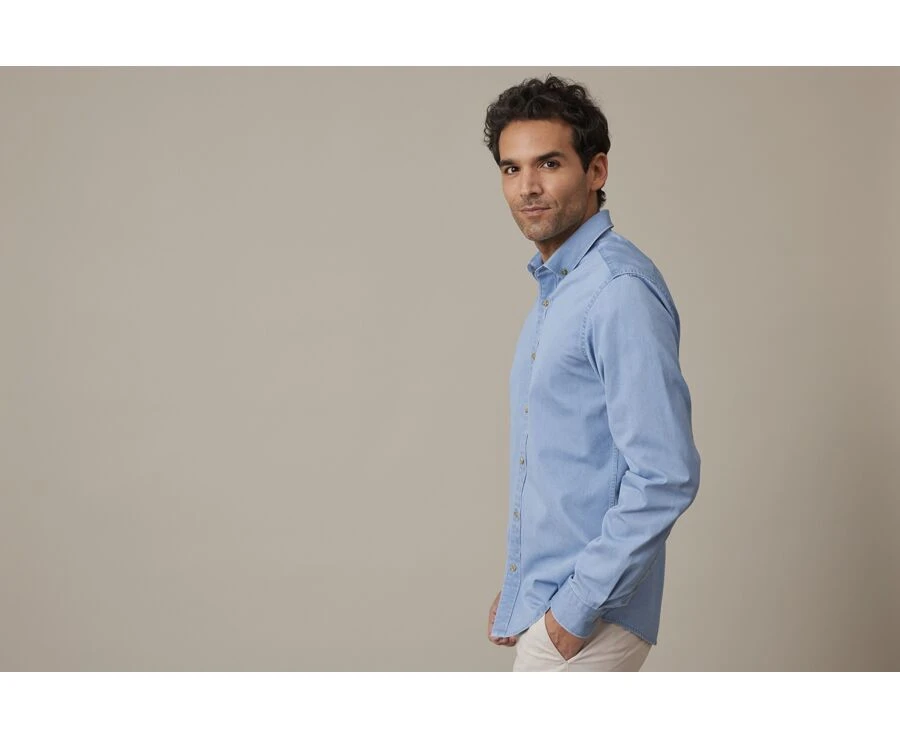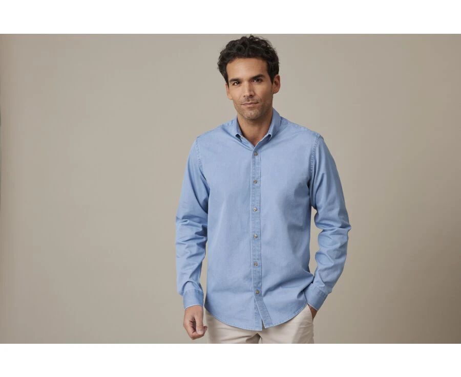 Chemise jean homme Cameron – Chemise coton – Coupe ajustée raccourcie – Col américain