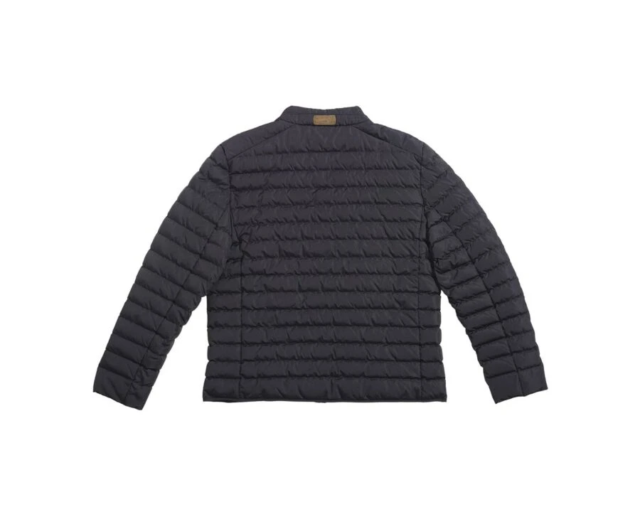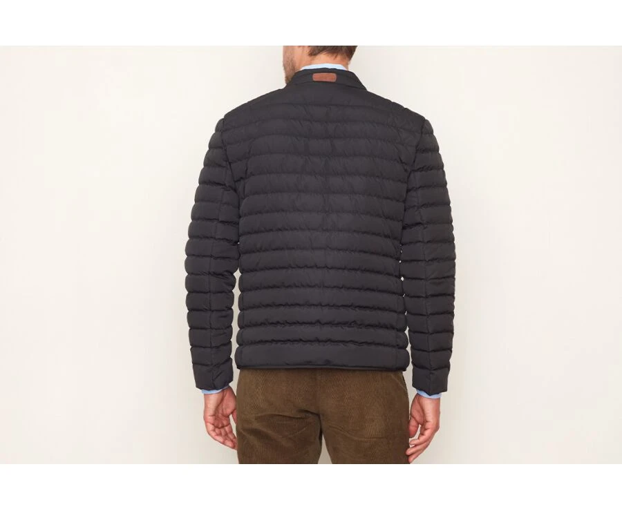 Col montant légèrement rembourré avec application en cuir véritable.