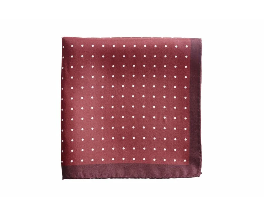 Pochette De Costume En Soie à Pois Bordeaux Et Blanc