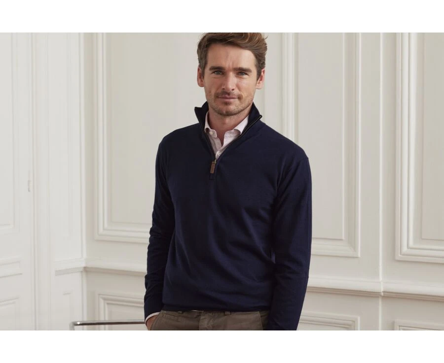 Pull col zippé homme – Coton/cachemire