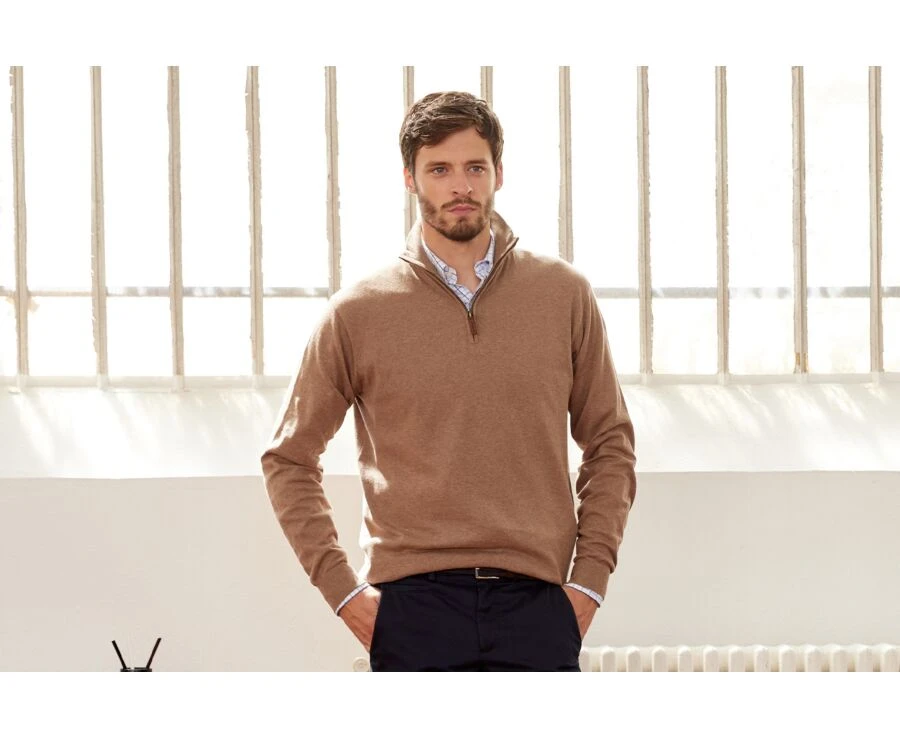 Tricoté dans une maille double fil, fine et luxueuse, alliant le coton et le cachemire, le pull col zippé Vlad est disponible dans une gamme de coloris basiques et tendances pour une saison haute en couleurs ! Finition bord-côtes au col, aux poignets et à la base.