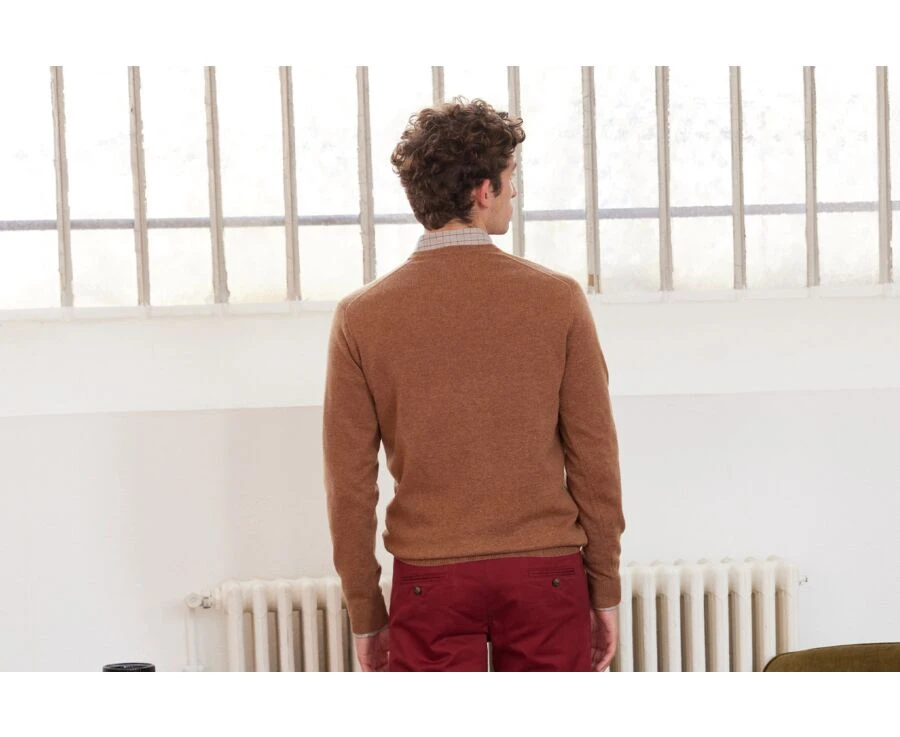 Idéal en toute saison, Elian est un pull col V homme coupe standard tricoté en laine d’agneau double fil.