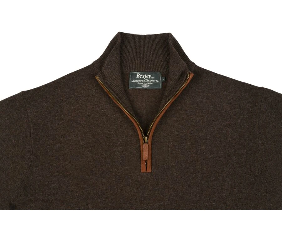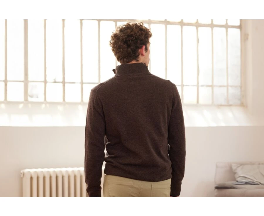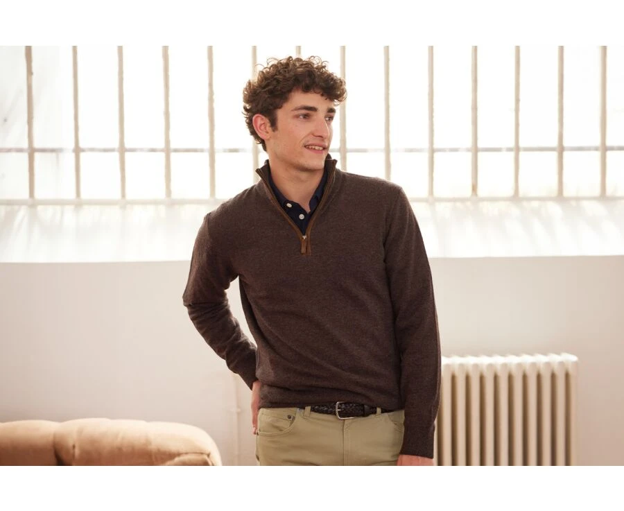 Le pull zippé homme Keithy avec passepoil et tirette en cuir vous accompagnera avec élégance. Idéal à porter avec une chemise.